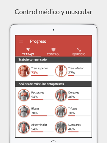 - Gestión de entrenamientos con videotutoriales, recomendaciones, contraindicaciones y trabajo muscular.