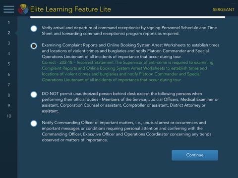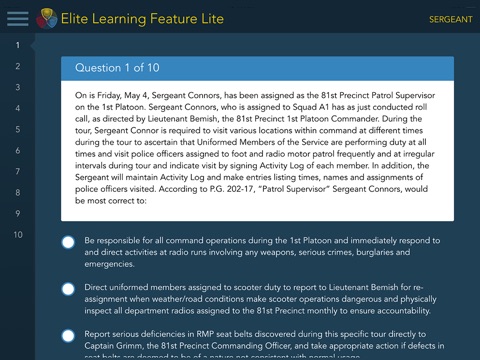 Prepare for the 2016 NYPD Sergeants Exam. The Elite Learning Feature (ELF) Lite is a quizzing tool which has questions very similar to past promotional exam questions for the 202 Series "Duties & Responsibilities."