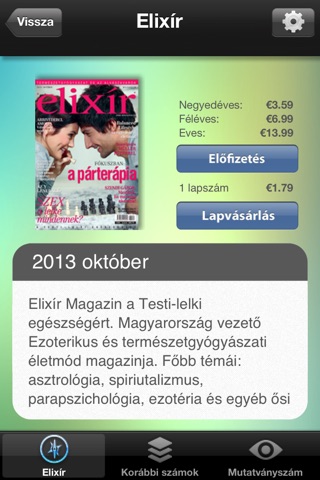 Az Elixir magazin iPad applikációjában Ön hozzáférhet a lap archív és folyamatosan frissülő számaihoz. A legújabb szám megjelenéséről kiértesítést küldünk. Az applikációban különböző időszakokra fizethet elő vagy választhat korábbi számaink közül.