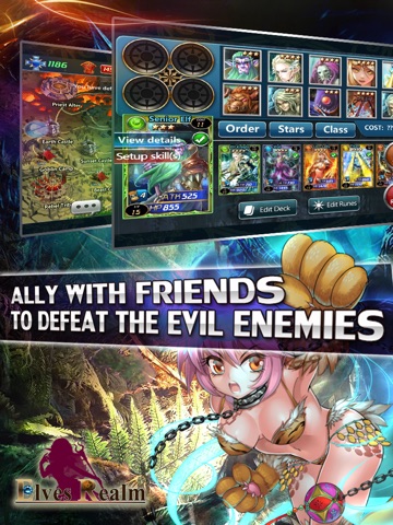 Elves Realm places you in a world filled with mystery and fantasy. Fighting is the heart of this game. The character classes, Runes and skills make this game easy to learn, but difficult to master! Put your deck in the Arena to see you Rank in the world. Not everything is about power, Elves Realm requires quick wit and careful planning. What you accomplish will only be limited by your desire and determination! Come for the thrilling battle! World domination is now within your grasp!
