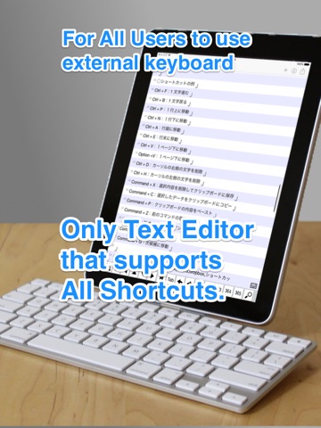 Select either Emacs or Mac key bindings. With Emacs key bindings, a marking function is available with Ctrl-Space. With Mac key bindings, editing operations using the ⌘ key are available, such as ⌘-Z for Undo and ⌘-F for search. These features make this app indispensable for those accustomed to keyboard operations.