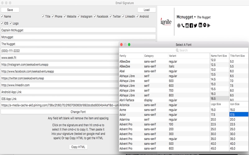 Simply copy the HTML or the signature out of the view and right into the signature slot of your favorite e-mail platform.