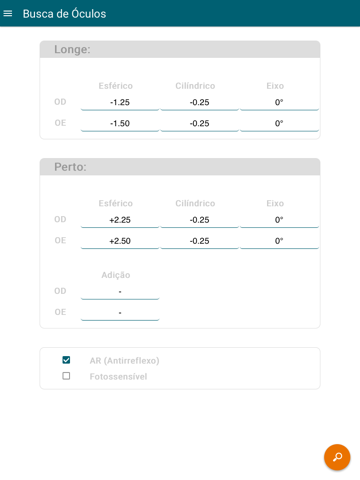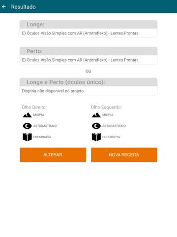 Por meio da receita oftalmológica, o app calcula quais ametropias o paciente possui e auxilia na escolha de quais óculos, contemplados pelo projeto, são recomendados a ele.