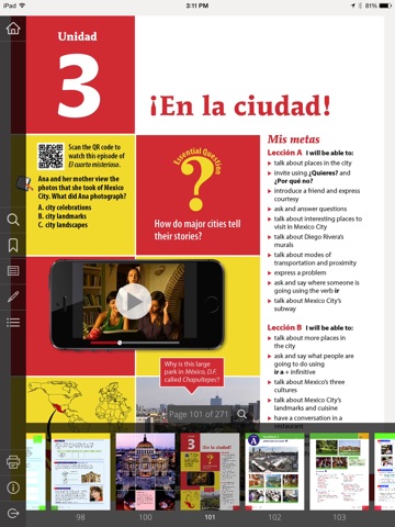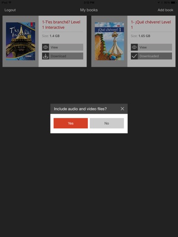 When the EMC eBooks app is used with fully interactive titles such as ¡Qué chévere! And T’es branché?, any work you complete on the auto-grading activities in those books will also be able to sync back to the EMC eBooks and Passport sites. This allows you to access all of your eBook materials, including audio, video, auto-grading activities and more, anytime and anywhere, with or without a connection.