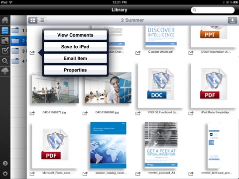 Documentum Mobile includes the following features (please note that some features may be disabled by your site administrator):