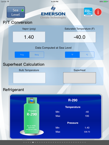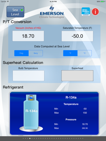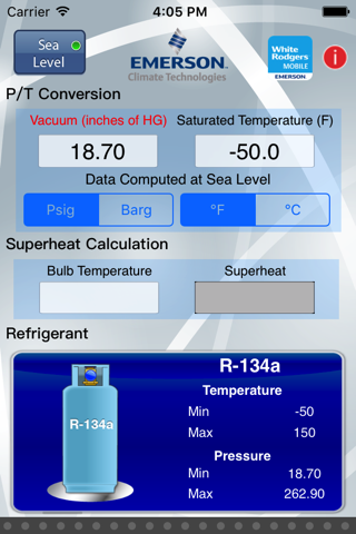 Copeland PT Pro(TM) application provides on-the-go access to pressure and temperature conversions. Select a refrigerant and enter a temperature (in C or F) and see what a saturated pressure (in Bar or Psig) will be. You can also enter a pressure and see what the saturated temperature is for that pressure. Download the Copeland PT Pro(TM) to your iPhone or iPad for FREE.