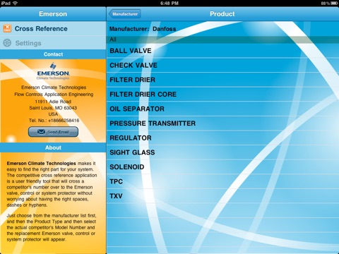 Emerson Climate Technologies makes it easy to find the right part for your system. The competitive cross reference application is a user friendly tool that will cross a competitors number over to the Emerson valve, control or system protector without worrying about having the right spaces, dashes or hyphens.
