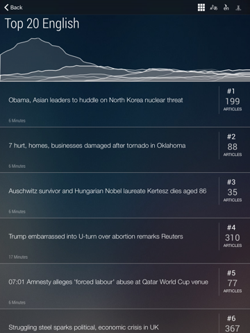 • Up to the minute results using Automatic Text Analysis of news articles from around the world (195000 new news articles per day).