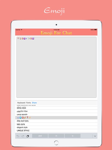 Emoji for chat is a free, smart and colorful Emoji Keyboard for iOS that help you to fast input over 3000 emoji, emoticons, smiley and text face conveniently everywhere including message, text, email and chat with social app etc.