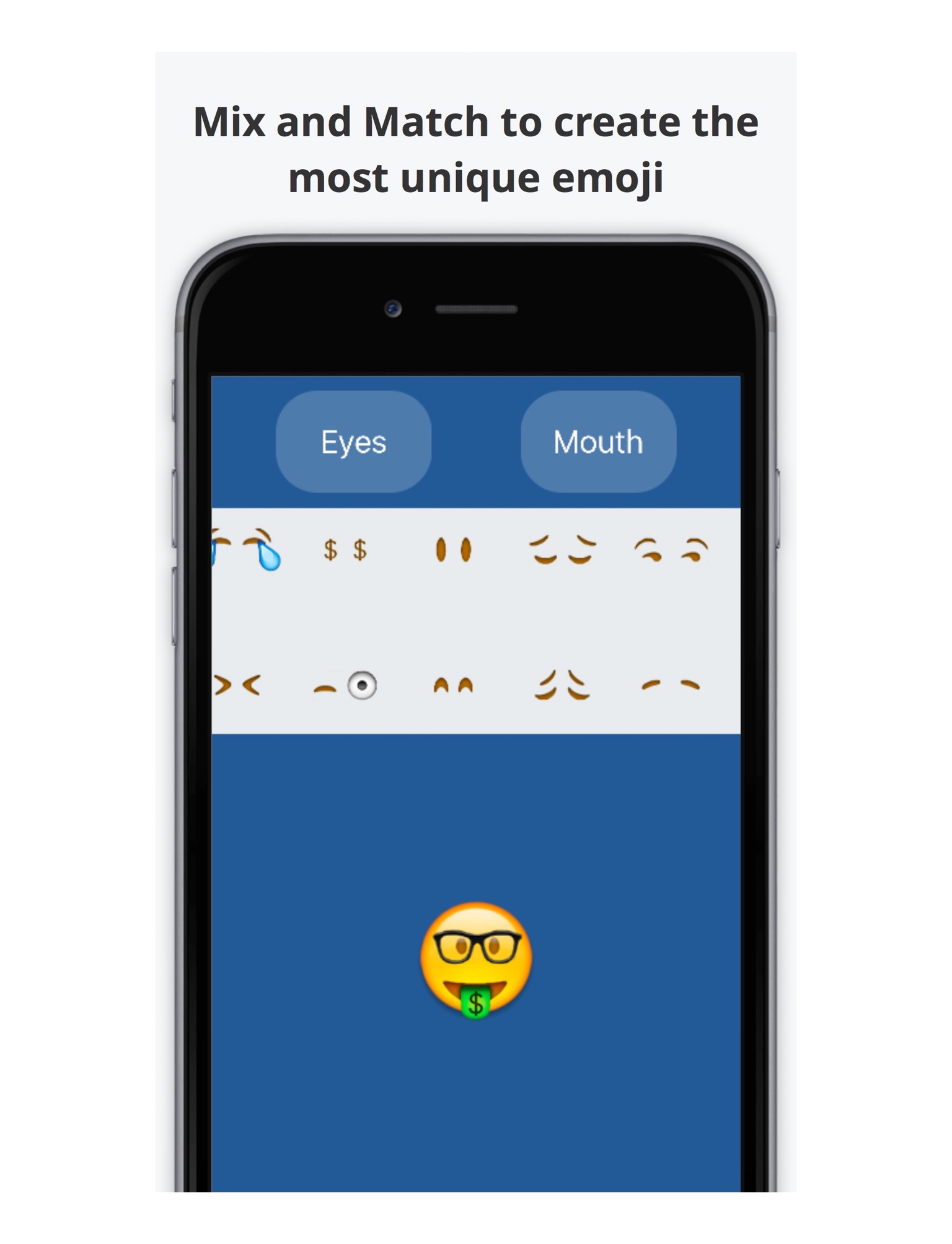 - The simple clean interface makes it easy to have fun creating your unique emoji.
