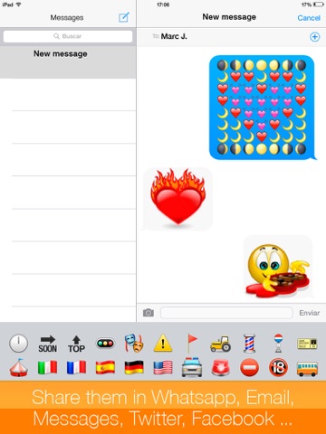 - Send the emojis in any of your apps (Twitter, Facebook, Mail, iMensajes, Line, Viber, Hangouts or Whatsapp!)