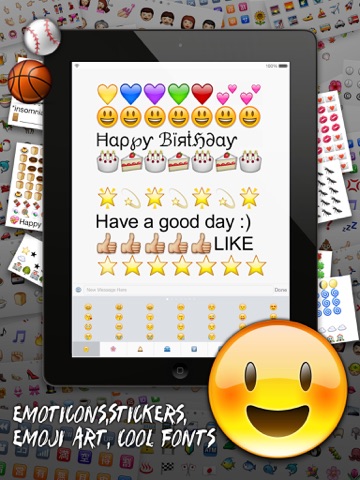All-In-One Emoticons App for iOS 6&7 provides Complete Emoji Keyboard, Brand new Emoji Icons, Emoji Arts,Text Arts and Cool Texts.