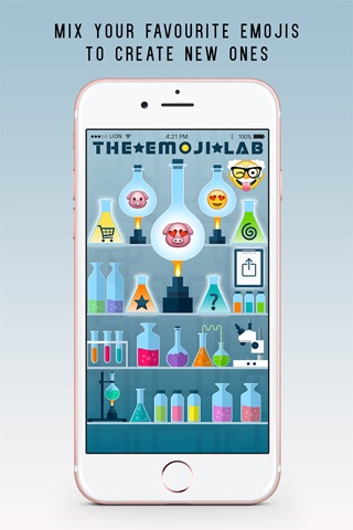 Presenting The Emoji Lab, an app created for emoji lovers! Thanks to The Emoji Lab you can now combine your favourite emojis to produce new ones, opening up a whole new world of emoji possibilities. Share your creations to surprise your friends and add a new dimension to the way you express yourself with your iPhone!