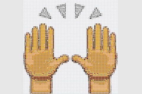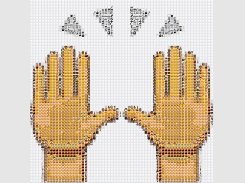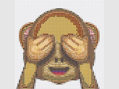 Touch a screen to pause the show and share artistic emoji mosaics on Facebook.