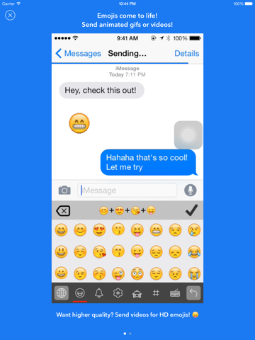 Combine tons of emojis into animated gifs or HD videos, the possibilities are endless! Its as easy as typing whatever emojis you want and pressing a button!