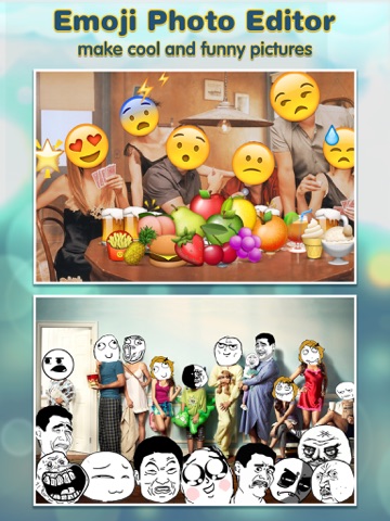 Make your friends and family members angry or happy, have them wear Cool Emoji Emoticons, Smiley Faces and Cartoon Stickers through Emoji.s Photo Editor!