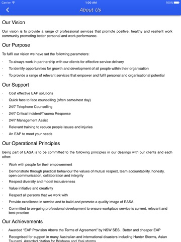EASA Employee Assistance (EASA EAP) is a highly awarded provider of Employee Assistance Programs to Business, Mining and Resources, Construction and Transport. EASA EAP offers professional, timely confidential Counselling Services and Critical Incident Management as well as the normal suite of EAP services that goes with best practice EAP. EASA EAP really is better and more cost efficient.