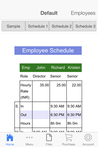 If you want to send and discuss your Employee schedule plan with your employees or partners, Employee Schedule is an easy to use app for you. You can locally save, email or print the Employee Schedule for yourself. Coordinating with your employees made easier with the Employee Schedule app.