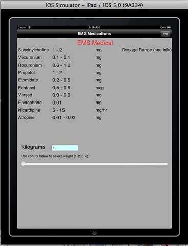 EMS Medical is a one page ultra-fast drug dosing calculator. It will determine multiple medication dosages by simply selecting the patients weight, eliminating the need for timely, multiple drug look-ups.