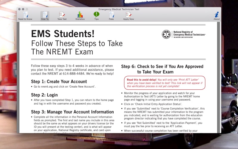 - “How To” section explaining the steps needed to take the NREMT Exam