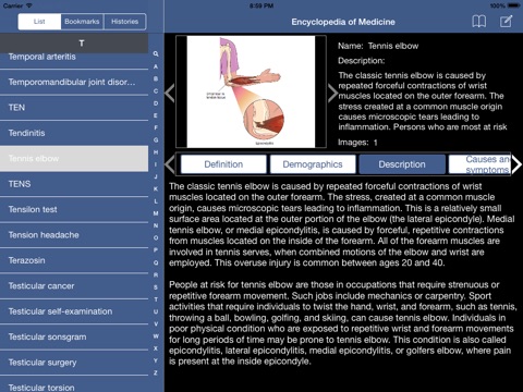 More than 1,800 full-length articles are included in this app and enhanced with 765 images, including photos, charts, tables, and detailed illustrations, including disorders/conditions, tests/procedures, and treatments/therapies. Many common drugs are also covered,with generic drug names appearing first and brand names following in parentheses. Prominent individuals in medicine are highlighted as sidebar biographies that accompany the main topical essays. Articles follow a standardized format that provides information at a glance.