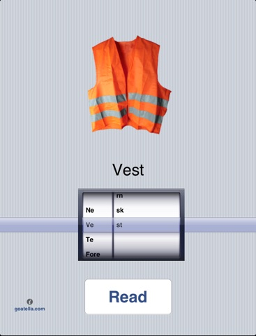 Builder Mode: For each ending sound the student selects, there is list of beginning sounds. After choosing an ending and beginning sound, clicking the "Read" button will display the new word, an image representing the word (so, a picture of milk for the word milk) and will play the word. Working speakers (usually built in) or a headset are required to hear the sound. The app contains 96 different word combinations, sound files, and images. Great for young readers!