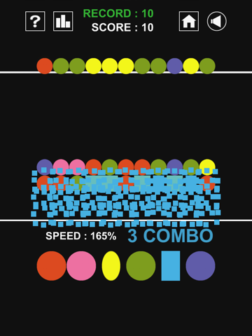- If you touch color button that is not exist near square, circles on the top falls immediately.