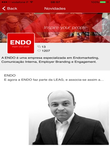 O EndoApp é um aplicativo exclusivo da ENDO para quem desenvolve ou gere projectos em Endomarketing, Employer Branding, Internal Gamification e Comunicação Interna. Tendências, novidades, comunidades, artigos, vídeos, campanhas, e muitas outras funcionalidades estão disponíveis no EndoApp.