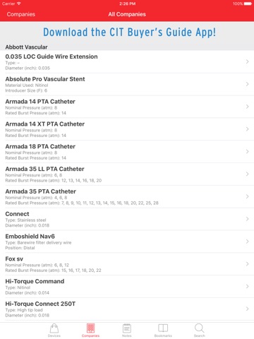 The Device Guide app, brought to you by Endovascular Today and Cardiac Interventions Today, provides a comprehensive listing of vascular and coronary interventional devices available in both the United States and CE Mark markets. This easy-to-use format places all four editions of our Guides (US and European) into one central tool, making it easier to search sizes, configurations, and unique characteristics of each product, along with company information, web resources, and product links for even more detailed information. With products updates and added regularly, this app delivers a hands-on tool that is a must-have for anyone in the vascular interventional fields.