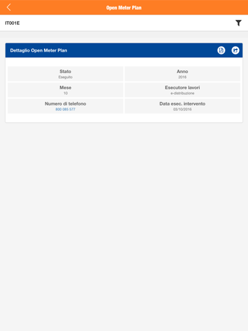 Il servizio “Open Meter Plan” fornisce informazioni sul piano di sostituzione dei contatori di prima generazione con i nuovi Open Meter. Accedendo al servizio è possibile visualizzare, relativamente alla propria fornitura elettrica (POD di propria pertinenza), il periodo pianificato per l’intervento di sostituzione, la data in cui è stato eseguito l’intervento ed i documenti di avvenuta sostituzione.
