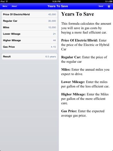 With energy prices on the rise and likely to stay high for some time, everyone can use an app to show how to save on energy costs. ENERGY SAVER FORMULATOR includes several formulas to help you decide what car is most energy efficient. The app even includes a formula that tells you how high gas prices have to go up in order to justify the purchase of an electric or hybrid vehicle.