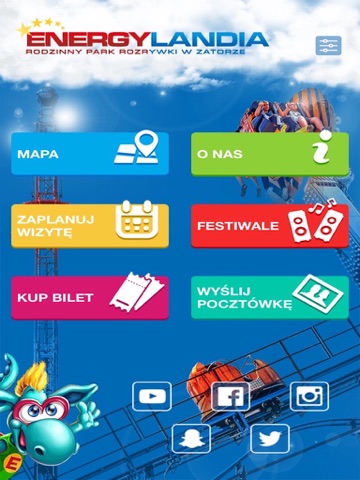 Energylandia Mobile to aplikacja z którą zaplanujesz swój pobyt w największym Parku Rozrywki w Polsce Energylandia. Specjalna mapa w naszej aplikacji bez problemu doprowadzi Cię do każdej atrakcji, sklepu czy restauracji na terenie Parku. Będziesz też mógł z nią sprawdzić aktualną pogodę, trasę dojazdu, kalendarz otwarcia i wydarzeń oraz zakupić bilet wstępu. Dodatkowo możesz z nią śledzić na bieżąco informacje o najlepszych festiwalach muzycznych.