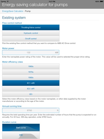 Calculate how much energy and money you could save by using ABB drives while also deriving other benefits such as soft starting and stopping, an improved power factor, and connection into process automation. EnergySave is a user-friendly and interactive energy saving calculator for comparing AC drive control against traditional flow control methods in different applications such as fan and pump. Over the years the formulas behind the tools have been developed and enhanced along with the pump and fan manufacturers in order to provide accuracy.