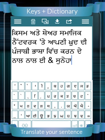 Punjabi Keys Plus Dictionary is a precious gift for those who loves to write in Punjabi & want to share in Punjabi language.Its not just Keyboard but also a Dictionary (English to Punjabi & Punjabi to English).