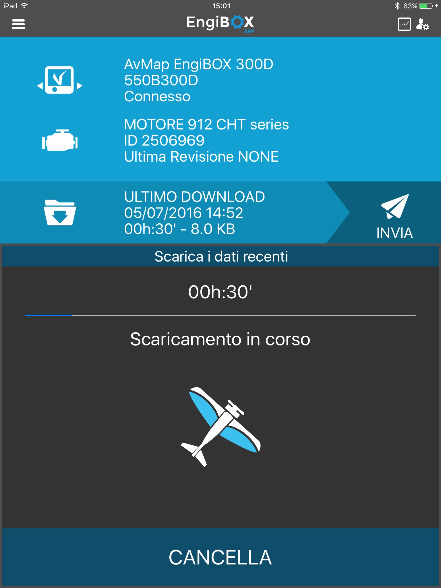Download the data log of your Rotax aircraft engine from the AvMap EngiBOX engine monitoring system, with your smartphone / tablet via Bluetooth and store it on the EngiBOX Portal.
