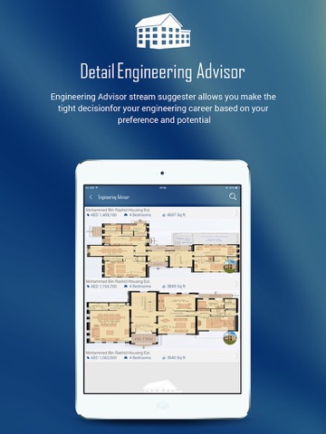Engineering Advisor is a new app published by Mohamed Bin Rashid Housing Establishment to help the customers to view the available designs for house construction. The application allows the user to search the type designs based on number of bed rooms, construction area, pricing. The application contains the following features: