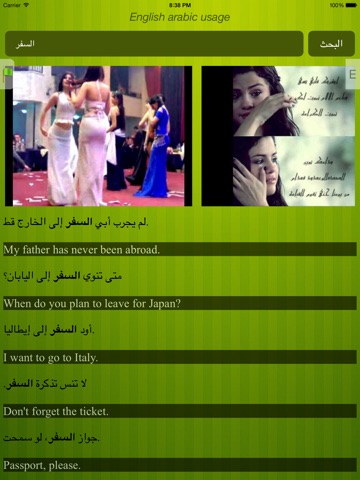 Search English- Arabic usage in daily conversation with pictures and videos as samples.