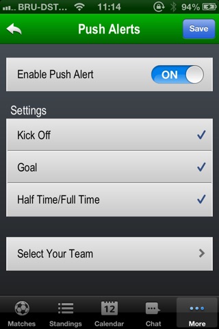 • Customizable Push Notification event for kick-off, live score, half time, full time, extra time and penalty kick