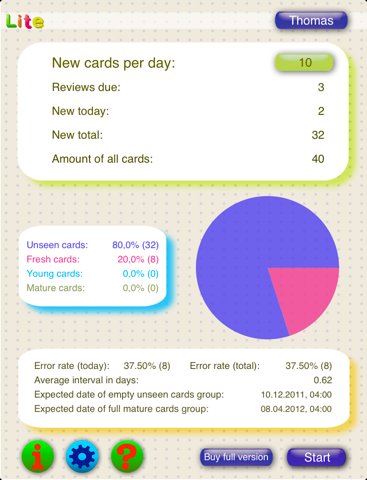 Spaced repetition is a learning technique that incorporates increasing intervals of time between subsequent review of previously learned material; this exploits the psychological spacing effect. Software automatically determine intervals between repetitions. It is a first spaced repetition application for children. Spaced repetition methodology assures life time warranty for memorized words.