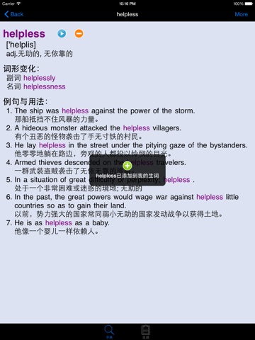 《英汉大字典》提供了生词本的功能,可以将任意单词加入生词本,方便您学习。