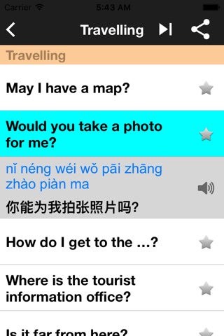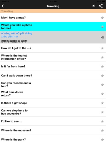 Collection of over 700 commonly-used Chinese phrases and vocabularies for travelers and beginners. All phrases categorized by topics, have transcription and voiced. This is to help you learn Chinese in even more entertaining manner.