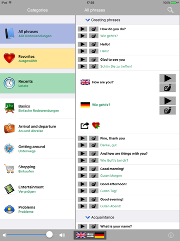 Heading out? Wordy is your ideal travel buddy! It doesnt need an internet connection. This app contains 1300 professionally translated phrases. It is possible to listen to the pronunciation of each phrase! The phrases have been specifically selected for tourism and for short - middle term stays. Wordy is also useful for language learning and improvement: you can save the phrases in a favorites section for easy access, and use them later to train yourself with the pronunciation.