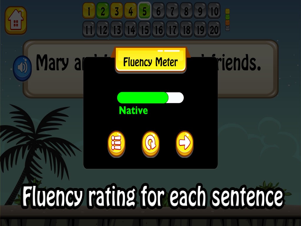 - Receive a fluency rating on your performance for every sentence.