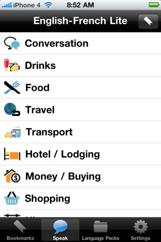 - Spoken in a clear native voice direct from your device, youll find yourself picking up new languages in no time at all. And with our unique user interface, finding the right category is easy; no need to scroll through lists of sentences, just instantly point and speak!