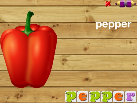 This game helps children recognize shapes, learn animal, fruit, vegetable vocabulary, numbers and alphabet.