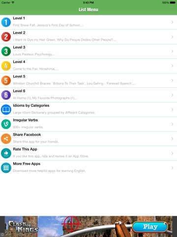 "English - Listening & Speaking" is a free application for listening to speak English. In "English - Listening & Speaking" all the articles are categorized and divided the level, which means that you can easily start your listening English practice from the level you’re comfortable in and work your way through the more advanced level articles and conversations. With preset scenarios that cover almost all the aspects of the daily lives, you will soon find the results of listening English practice effectively affecting your English listening and speaking skills.