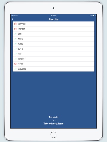 You can review your results at the end of the test. Retake the test if you want or take a new batch.