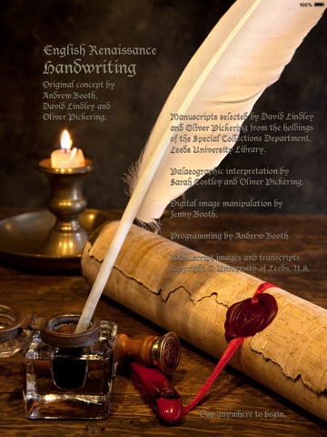 The origins of this app lie in online exercises in palaeography developed for postgraduate students at the University of Leeds in West Yorkshire, U.K. The aim is to provide practice in the transcription of sixteenth and seventeenth century hands. Many of the manuscripts, especially after 1600, use a varying mixture of secretary and italic letter forms.
