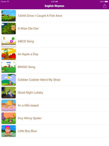 A great fun and an educational tool especially for preschool and kindergarten toddlers. Whether youre a parent of a young child, teacher or an older brother or sister here you will find a delightful, charming, uncomplicated, safe, absolutely perfect rhymes for your little ones. All the familiar and best loved Rhymes presented in English format that can be easily understood for early stage babies.