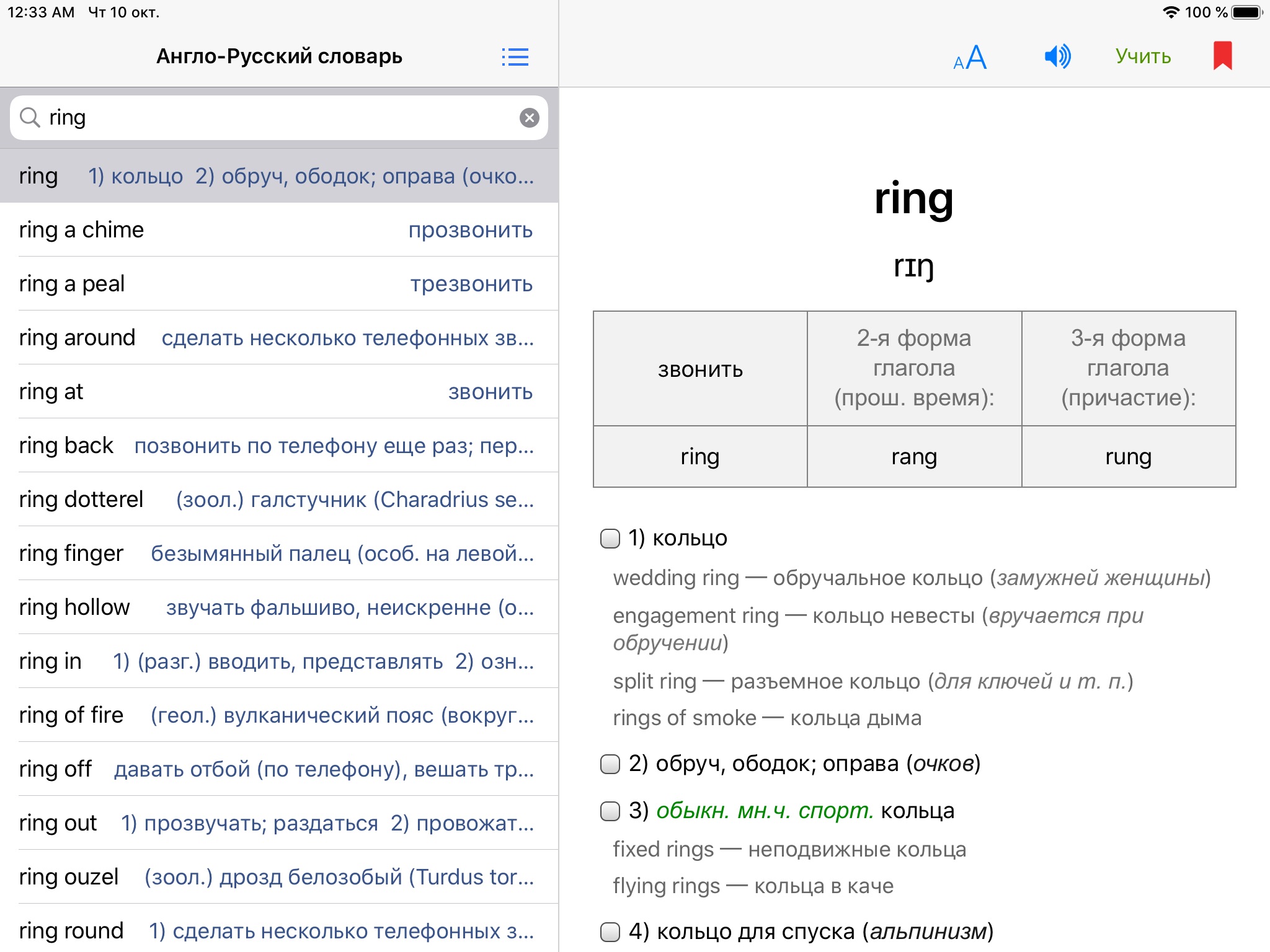 Постоянно вылетает при выборе слова на 5s. А в целом очень полезный словарь, приведены множества значений в разных сферах применения.